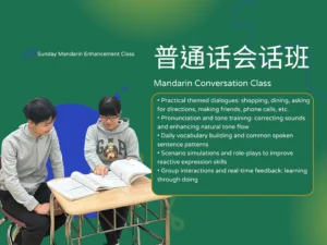 Want to speak fluent Mandarin but always hesitate? The Mandarin Conversation Class helps you overcome language barriers and improve fluency and confidence starting from everyday conversations. Combining practical scenarios, role-plays, and real-time interactions, this class ensures you “learn it, speak it, and use it!”