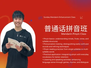 Pinyin is the first step to learning Mandarin. A solid foundation in pinyin not only ensures accurate pronunciation but also boosts reading, writing, and speaking abilities. The Mandarin Pinyin Class is designed for beginners, using systematic teaching and engaging interactive activities to help students developing the fundamental Mandarin pronunciation so that non-native speaker will be able to have proper techniques in their pronunciation skills.
